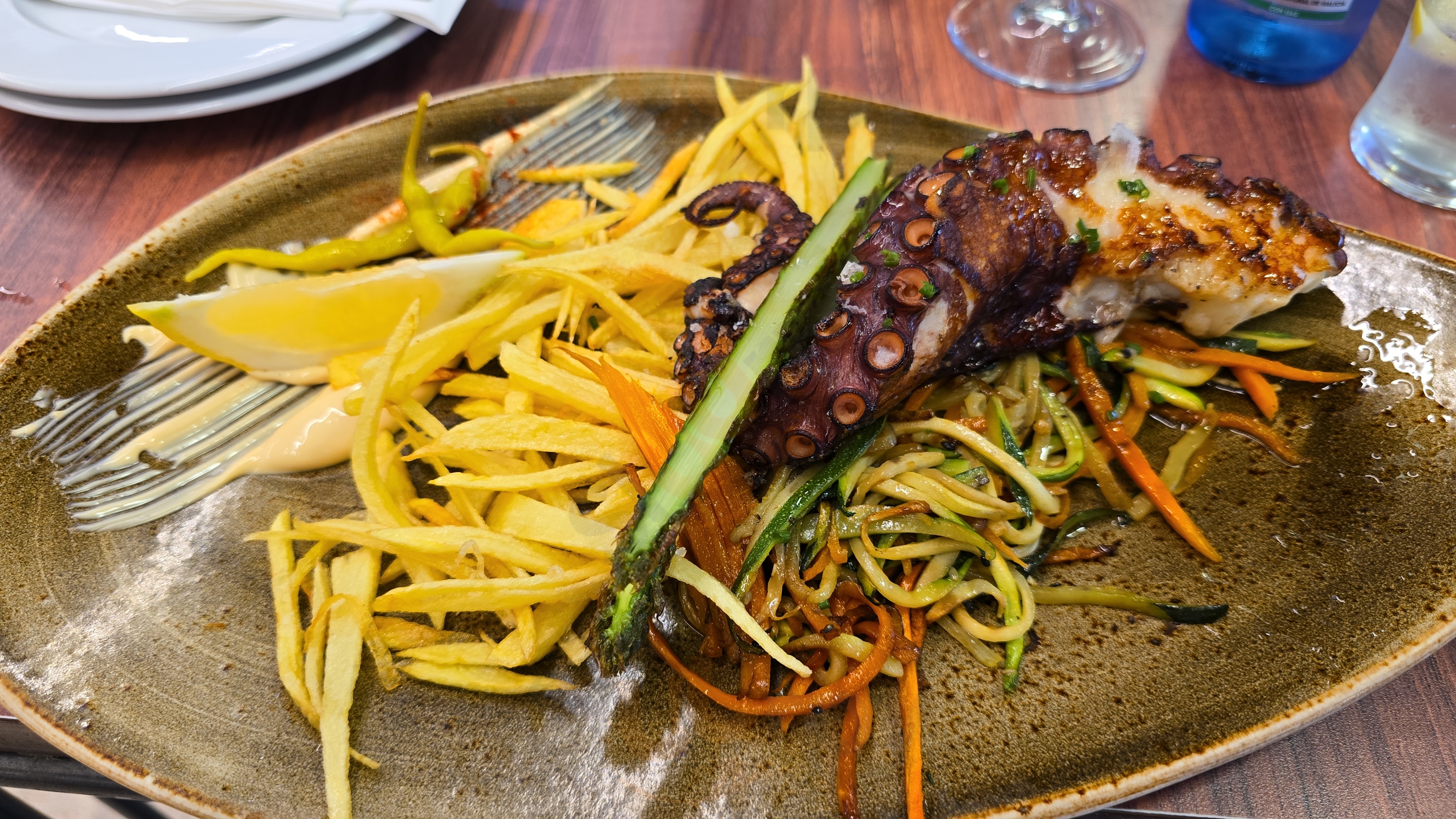 Gran comida en La Medusa, todo buenísimo, de calidad y bien cocinado. El pulpo excelente, los huevos rotos con gambas increíbles, las zamburiñas también buenísimas. No defrauda. Gran atención en el servicio, a pesar de que es un ambiente muy informal. A destacar el servicio de Guido que te hace esta