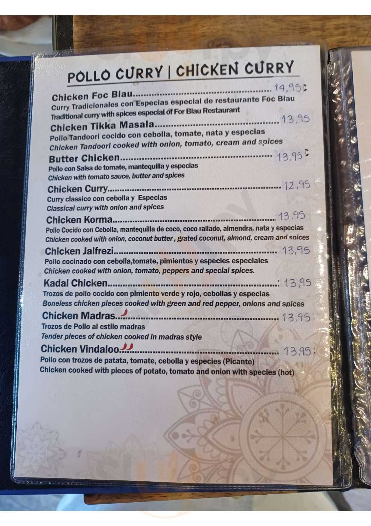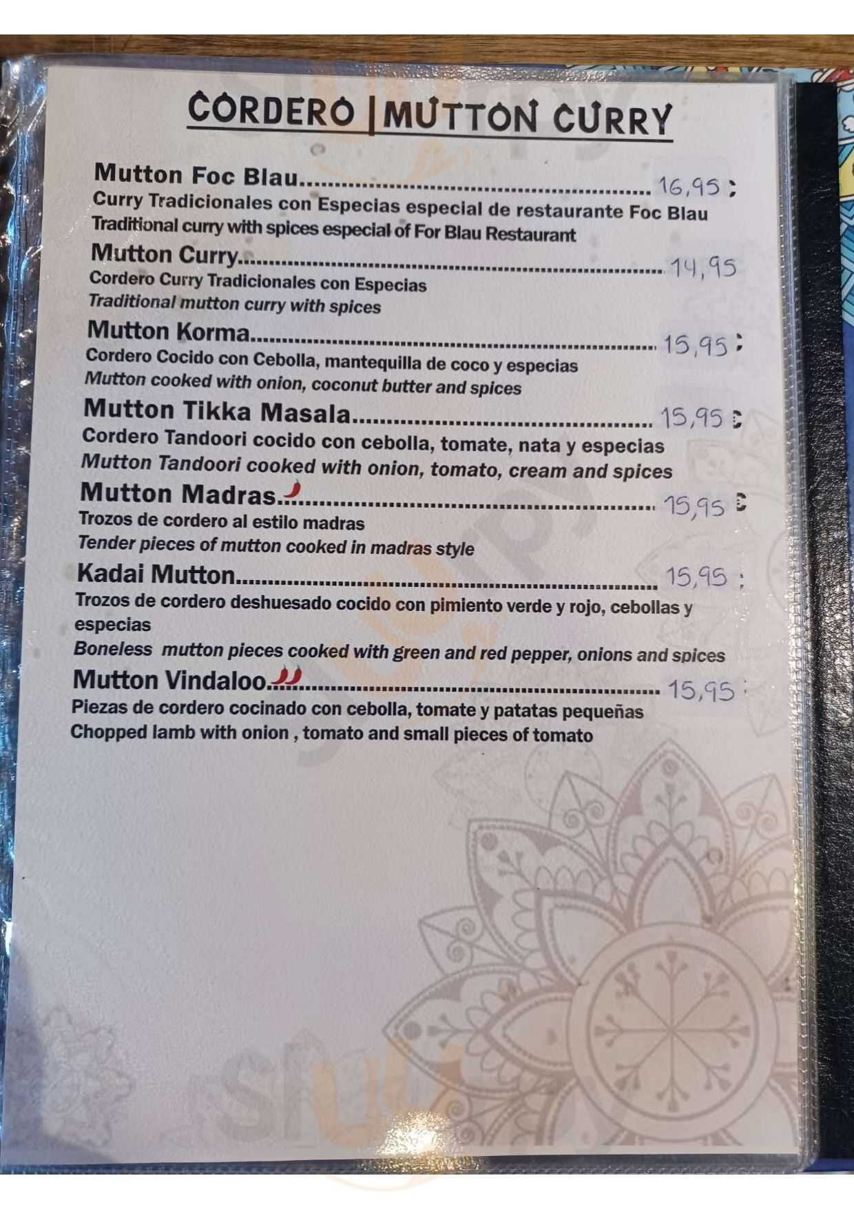 Curry Masala Foc Blau menù, Barcelona